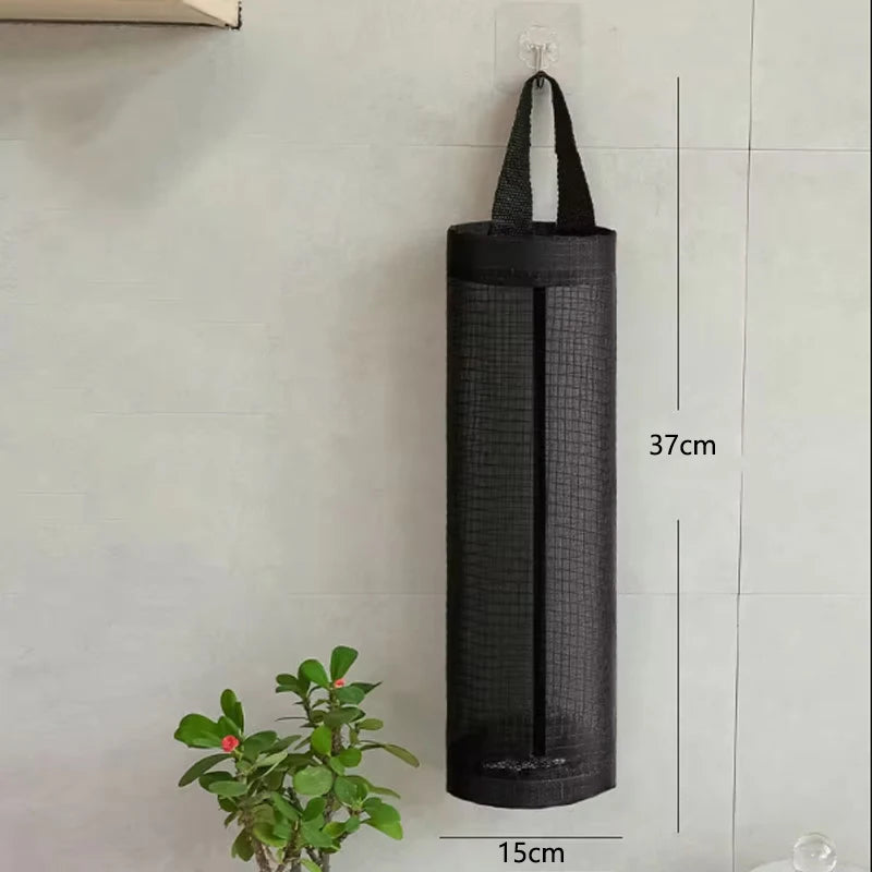 This practical wall-mounted storage pocket is designed to neatly store plastic bags and garbage bags, keeping your kitchen organized and clutter-free.